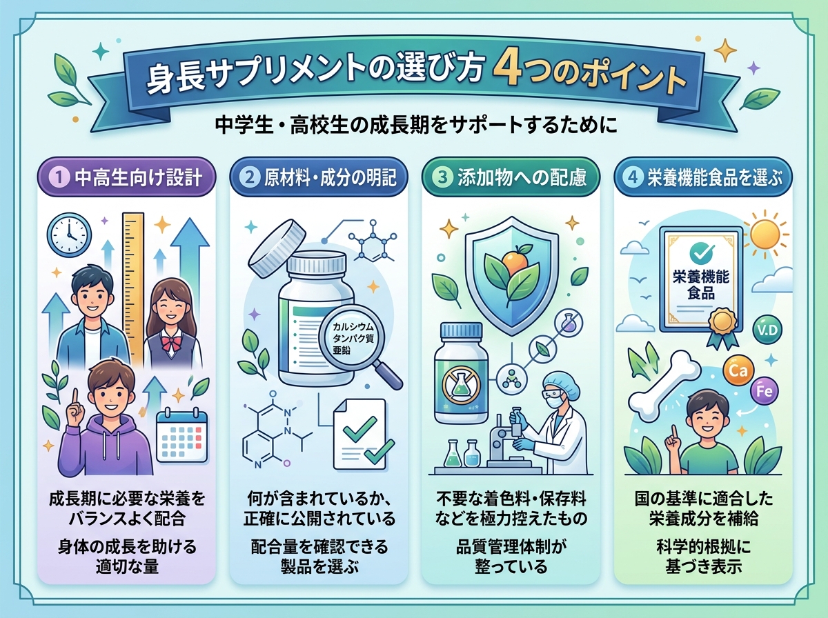 身長サプリを選ぶときにチェックしたい4つのポイント